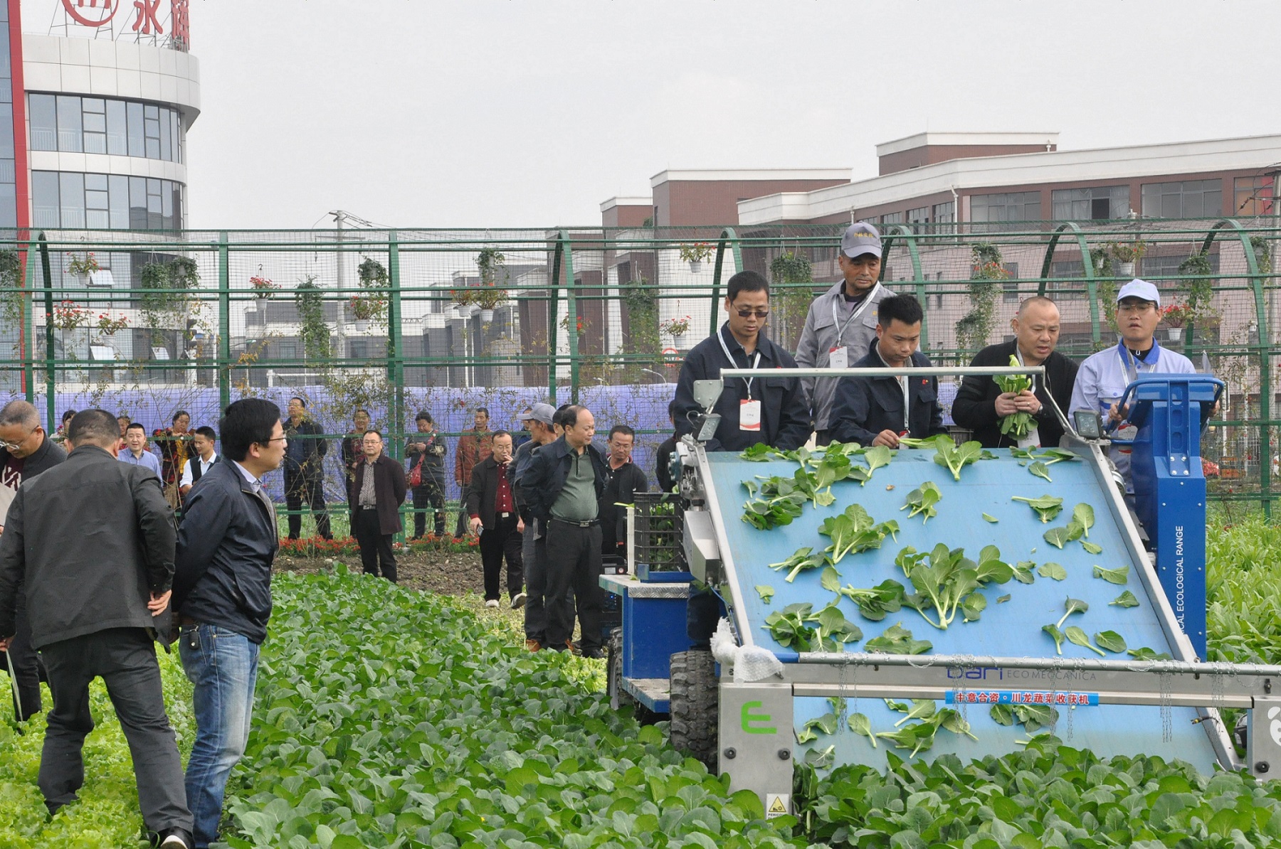 四川川龙农业装备集团有限公司与意大利合作开发的蔬菜收获机蔬博会现场展示